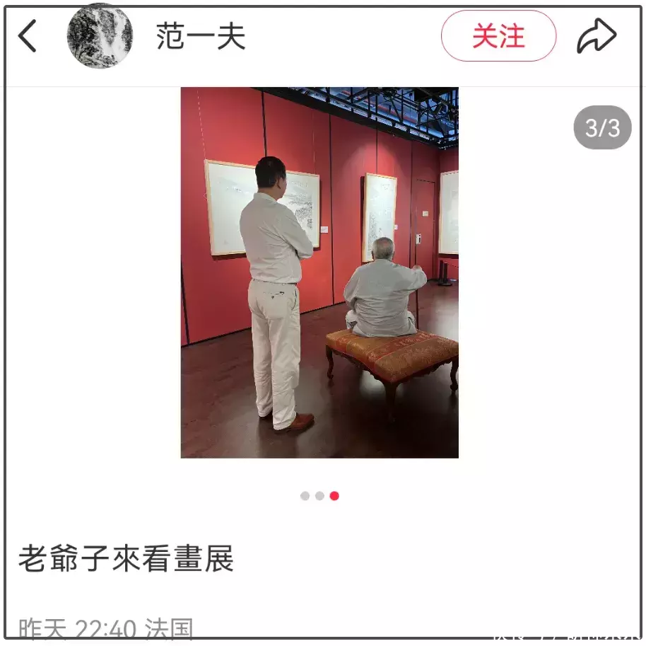 看得出来,范一夫没少因为“范曾儿子”这个身份而得到好处。在范曾亲生女儿发文称父亲失联之后,范一夫就深夜上线晒出范曾看展的照片,称“老爷子来看画展”,疑似否认范曾失联。虽被扒出是旧照,但看上去范一夫和范曾之间的联系,似乎比范晓蕙这个亲生女儿都要紧密。