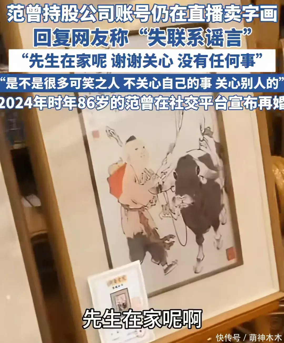 据悉范仲达开了一家博物馆,收藏了很多字画作品,其中自然也少不了继父范曾的作品。还开了范曾艺术品公司,出售范曾的作品,据悉此前还曾直播卖范曾作品,在范曾被曝失联之后,工作人员在直播时还回应称都是谣言,“先生在家呢,没有任何事”。