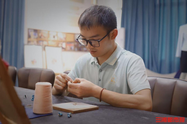 夏富磊3岁时患上小儿麻痹症,身体上的不便,没有影响他对梦想的追求,凭借双手和坚韧的心志投入手工缠花技艺中。